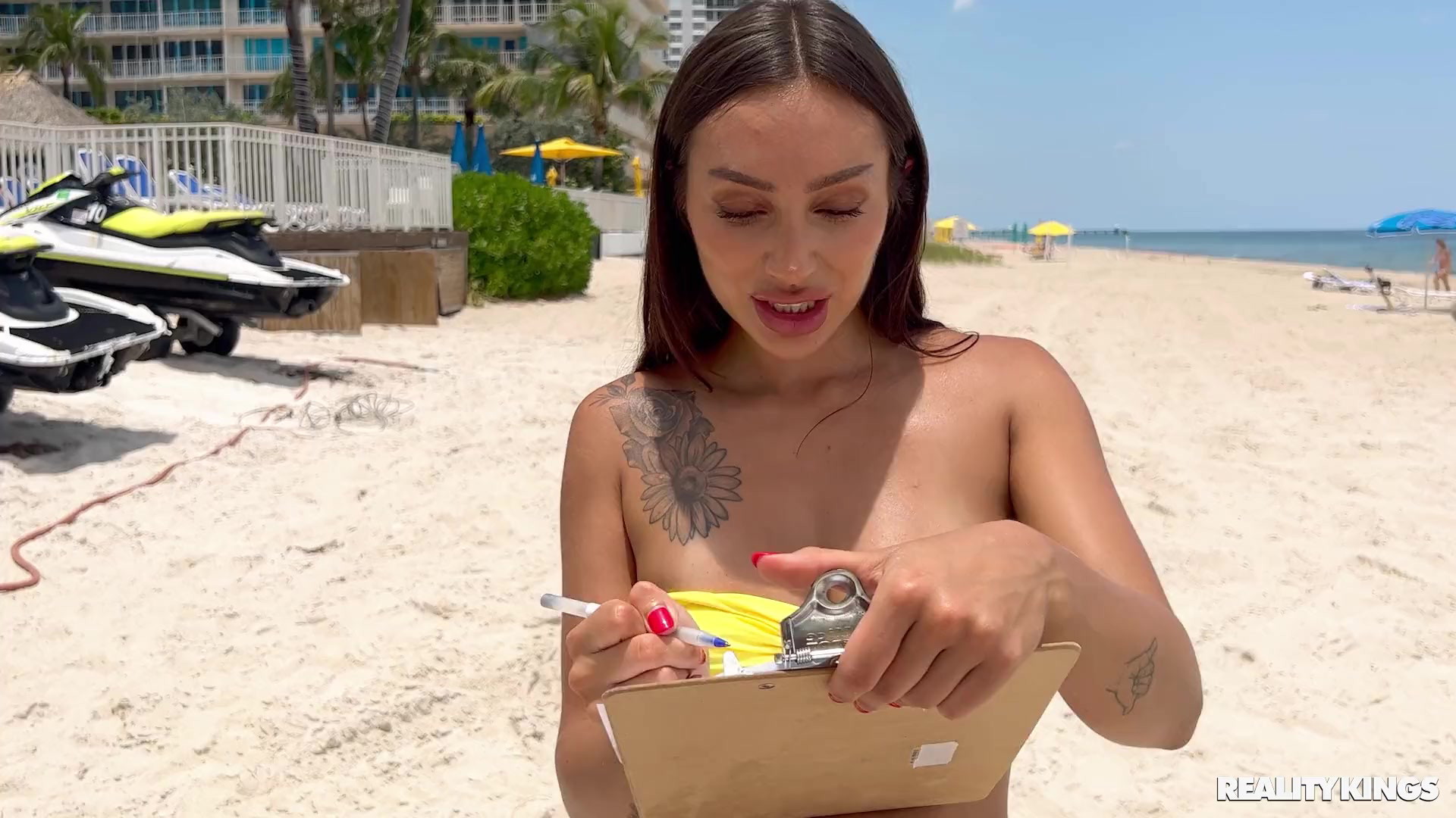 by Reality KingsJet ski instructor James Angel sneaks peeks at his new student, Sisi Rose, while she scribbles on the forms. The tattooed brunette bends low, revealing her firm ass as she peels off her shorts, but the action explodes on the open water! Sisi tugs her bikini to the side, flashing her slick pussy at James, then drags him to her hotel room. James hammers her hard, making her squirt in ecstasy before unloading ropes of cum across her face!